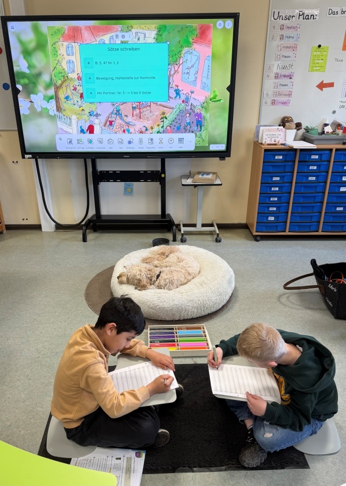 Unsere Schulhunde, Fräulein Maja und Friedel, haben in den letzten Wochen ihre Wiederholungsprüfung mit Bravour bestanden.