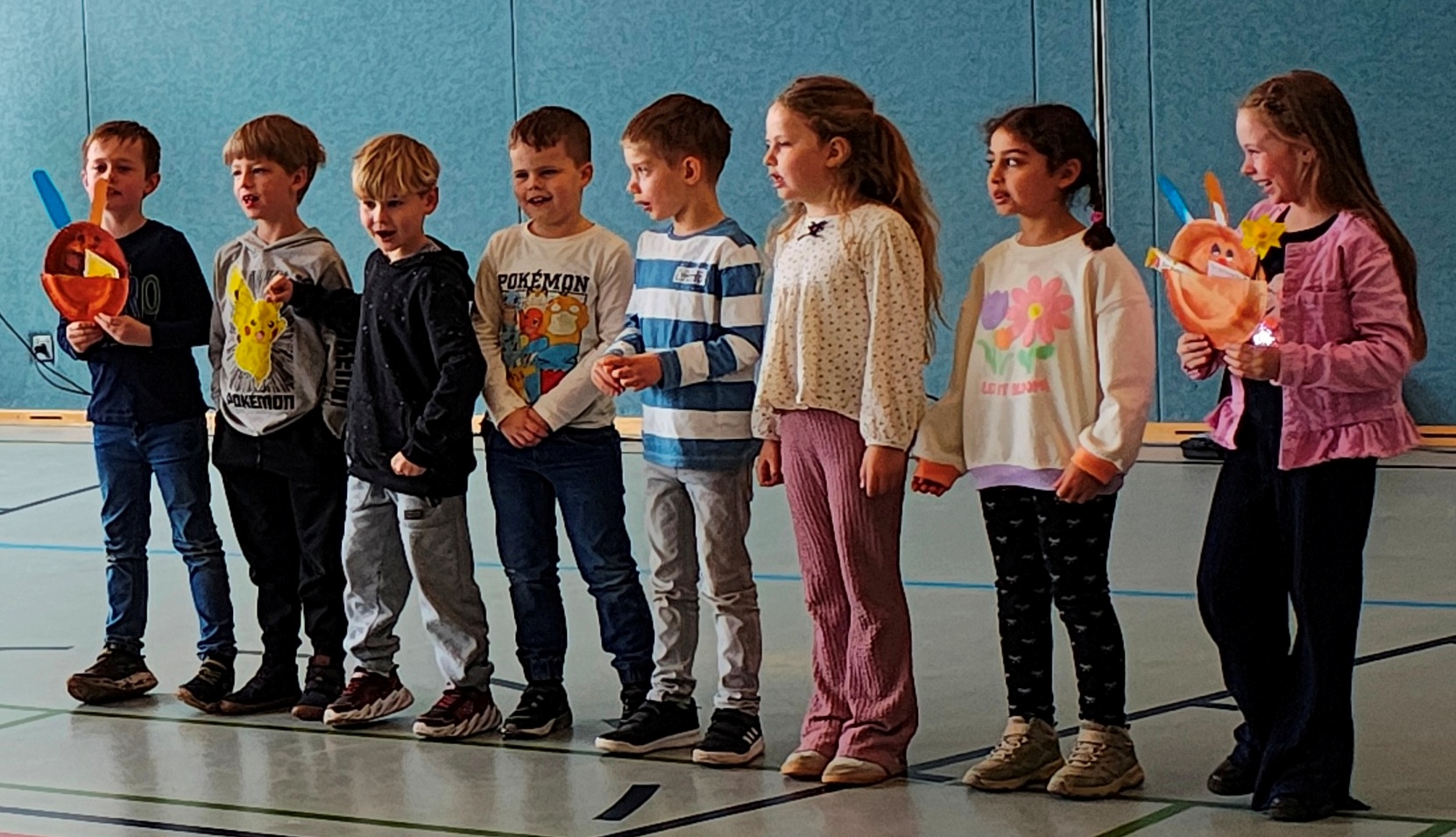 In diesem Jahr gab es einen gemeinsamen Basteltag, um mit allen Kindern besonders schöne Laternen herzustellen. So entstanden leuchtende Quallen, Pilze, Monster und Fische.